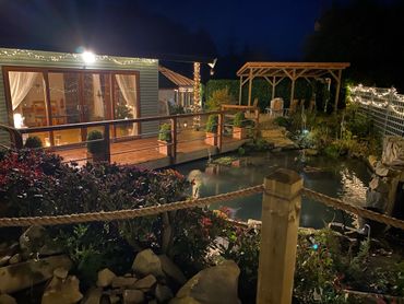 Overnight stay for couple in pond side Summer House with breakfast hamper and use of luxury hot tub